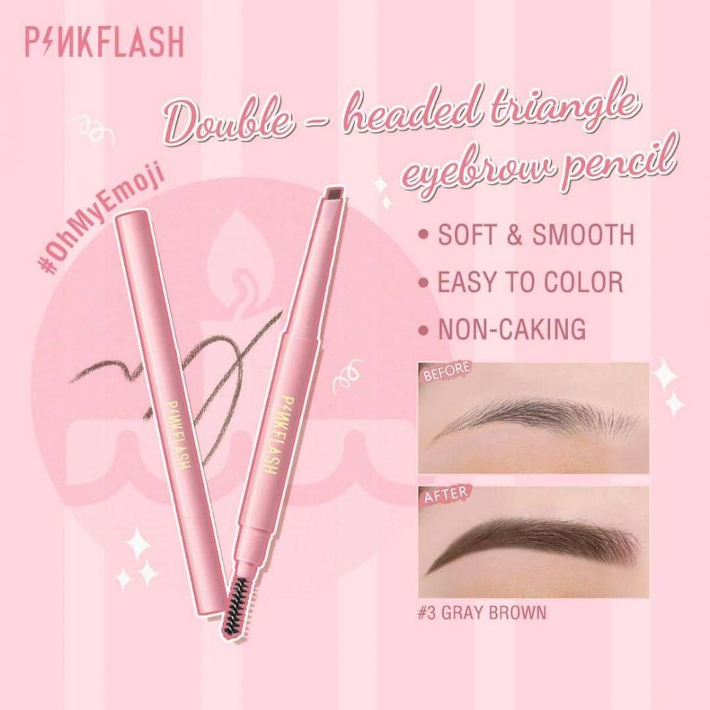 Bagi kamu yang suka dengan warna alis natural, Pinkflash menawarkan produk pensil alis segitiga yang dilengkapi empat warna, seperti natural brown, chocolate brown, gray brown, dan natural gray.