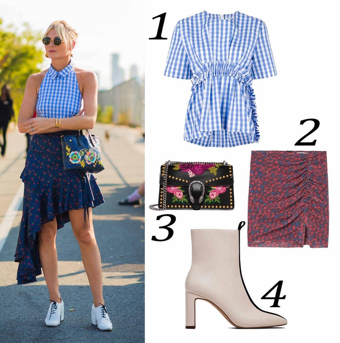 Musim panas saatnya kamu tampil lebih fresh. Manfaatkan warna dan motif khas musim panas dengan padu-padan yang chic seperti Pandora Sykes. Atasan gingham biru dan rok floral dikombinasikan dengan sepatu berwarna putih, berhasil menciptkan look musim panas yang trendi.