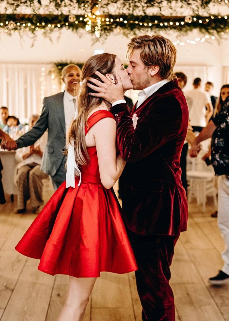 Rangkaian acara pernikahan berlanjut di malam hari. Barbara Palvin kembali ganti outfit dengan dress tradisional Hungaria 'menyecske'. Dress warna merah ini merupakan rancangan Mero. Dylan Sprouse menyesuaikan outfit merah Barbara dengan mengenakan red velvet suit set.