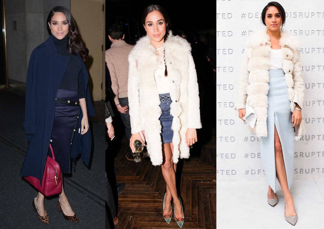 1. Meghan mengkombinasikan outerwear dengan mix and match yang chic. Dengan gaya warna senada dan pastel, outerwear terlihat lebih elegan.