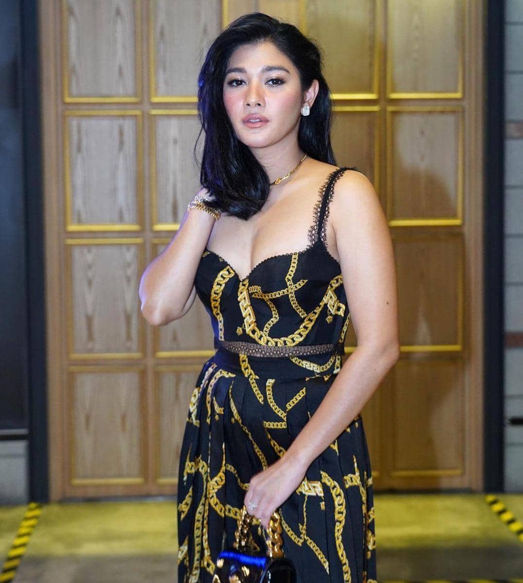 Berperan sebagai Wulan di film Inang, Naysilla Mirdad hadir di screening film Inang di BIFAN 2022 menggunakan midi dress dan black mini bag rancangan Versace. Gold chain printed pada dress yang menjadi salah satu ciri khas Versace membuat penampilan Naysilla Mirdad terlihat elegan dan menawan.