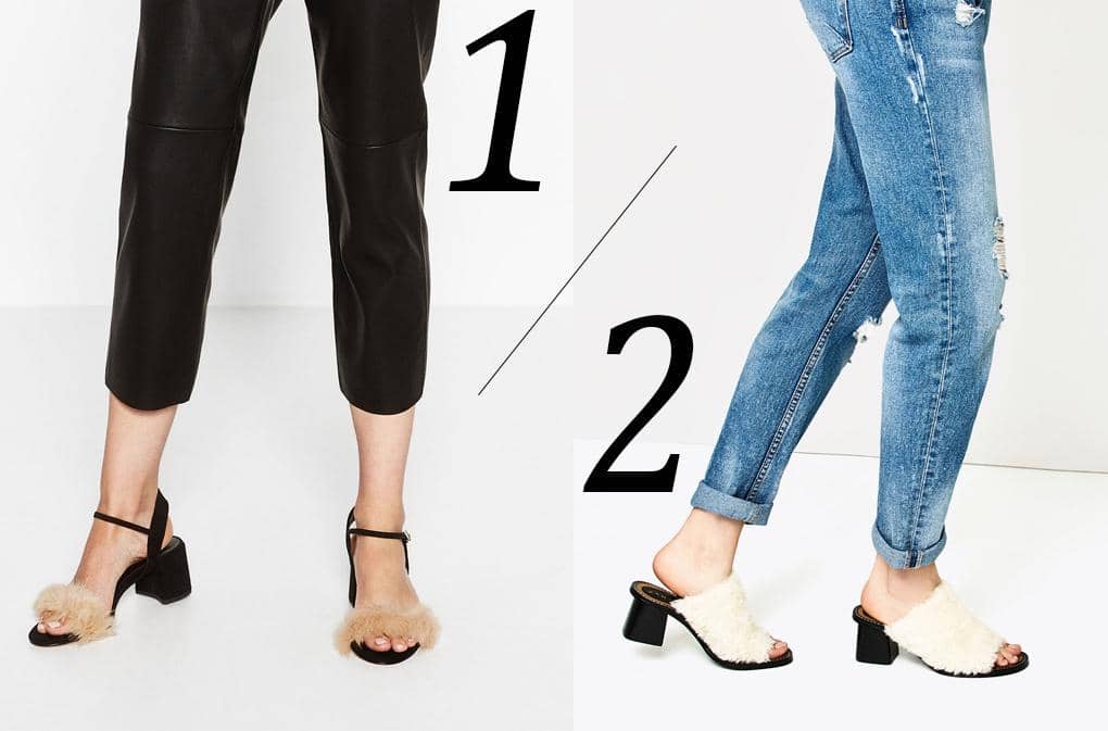 1. Mid heels fluf sandal, ZARA, IDR 799,900 ; 2. Slip fluf sandal, ZARA, IDR 999,900
