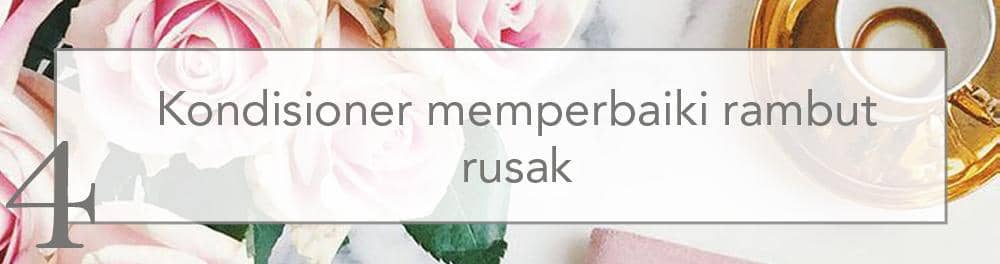 Terkadang kerusakan rambut memang sulit dihindari, apalagi untuk kamu yang akrab dengan proses styling, terpapar polusi, serta udara panas pasti makin susah jauh dari risiko tersebut. Untuk itu pastikan rambut menerima perawatan spesial yang salah satunya bisa didapat dengan cara memakai kondisioner. Pakai kondisioner dengan cara yang benar yakni aplikasikan dari bagian tengah ke ujung rambut. Pastikan kondisioner tidak mengenai kulit kepala. Untuk hasil maksimal, gunakan kondisioner setelah keramas.