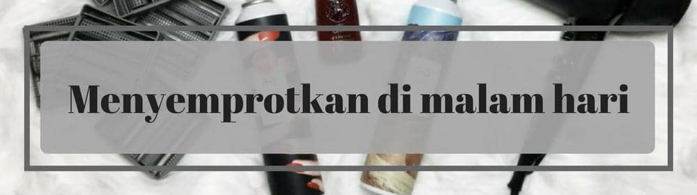 Cara terbaik untuk menggunakan dry shampoo adalah dengan menyemprotkannya di malam hari, sebelum tidur. Tenang, menyemprotkan produk sebelum tidur nggak akan membuat taburan powder menempel di rambut, kok. Ketika bangun keesokan harinya, sisir rambutmu sembari membersihkan residu produk.