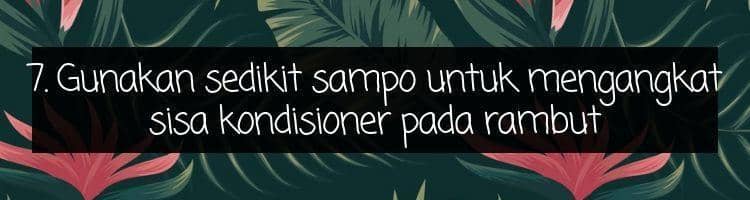 Tahap akhir dalam cara menggunakan kondisioner yang benar ialah kamu pun juga dapat menggunakan sedikit produk sampo saat usai membilas rambut jika merasa kondisioner masih menempel pada rambutmu.