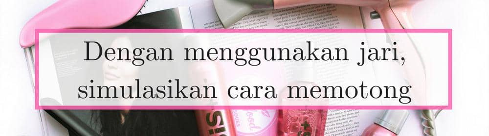 Sebelum menggunakan gunting yang sesungguhnya, coba gunakan jarimu terlebih dahulu. Dengan memakai jari tengah dan telunjuk coba ambil sedikit rambut dan tarik dengan menggunakan kedua jari tersebut. Cara ini membantu agar kamu tahu seberapa banyak yang dipotong nantinya.