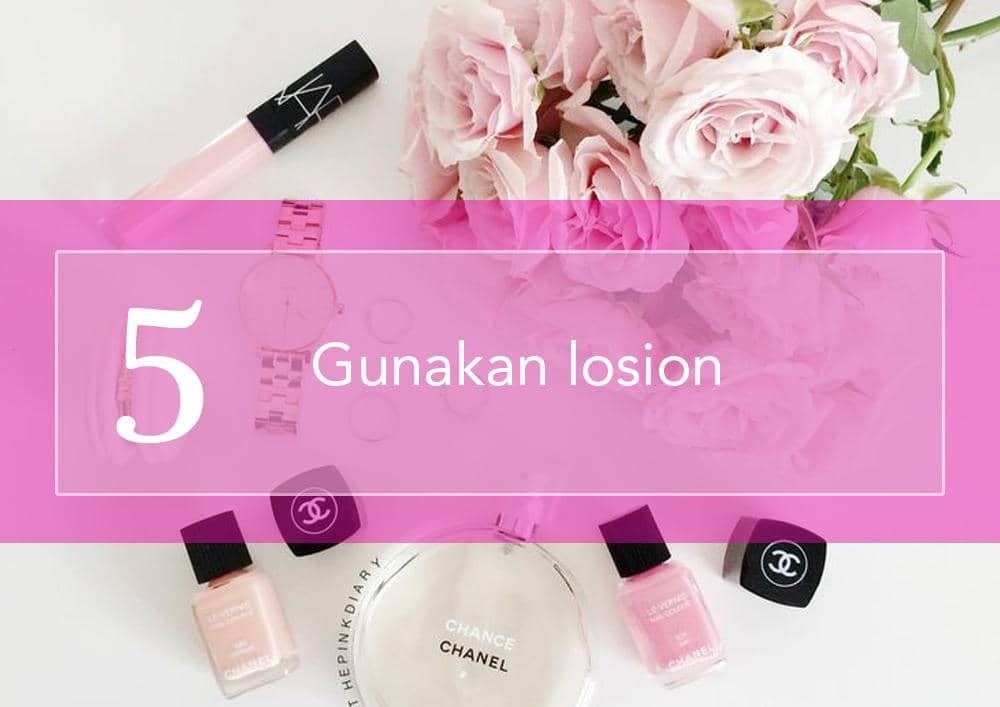 Ambil sedikit lotion lalu oleskan pada rambutmu. Menggunakan lotion akan membuat rambutmu tetap lembut selama kamu tidur.