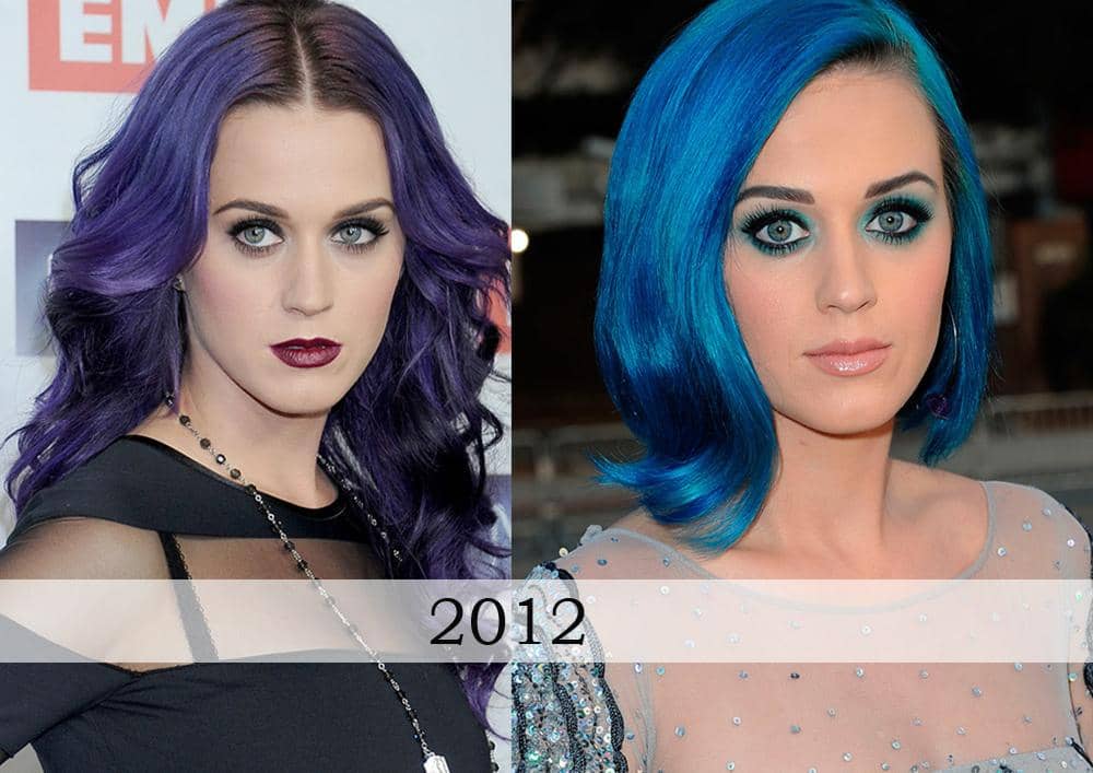 Di bulan Februari tahun 2012, Katy Perry tampil chic dengan potongan rambut pendek asimetris berwarna biru. Lalu di bulan Mei, Katy Perry tampil sedikit grunge dengan gaya rambut panjang bergelombang berwarna ungu.