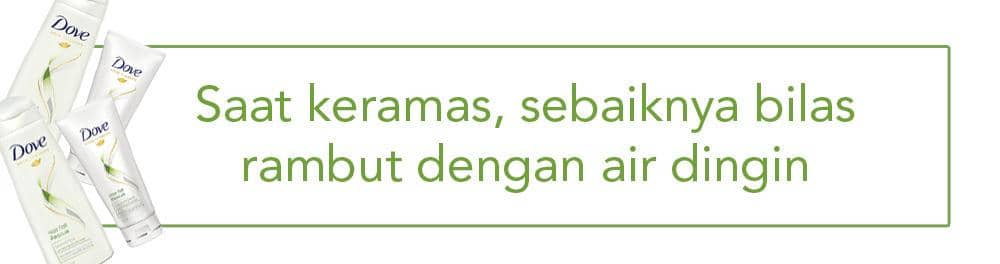 Pada dasarnya, penggunaan air hangat maupun air dingin untuk membilas perlu disesuaikan dengan kondisi rambut kita. Pemakaian air dingin memang banyak direkomendasikan karena sifatnya yang menutup kutikula rambut, sehingga nutrisi dari sampo akan lebih mudah diserap. Namun dalam kondisi rambut yang sangat kotor, misalnya, kita bisa menggunakan air hangat dan dingin secara bergantian. Mulailah basahi rambut dengan air hangat untuk memudahkan terangkatnya debu dan kotoran. Lalu setelah keramas, akhiri dengan air dingin agar kutikula menutup dan nutrisi lebih teresap.