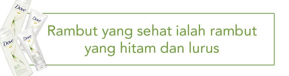 Hingga saat ini, banyak orang beranggapan bahwa rambut yang hitam dan lurus merupakan kriteria utama dari rambut sehat. Hal ini hanyalah mitos, Bela. Sebab, rambut sehat tidaklah dilihat dari warna atau tipe rambut yang kita miliki. Rambut sehat ialah rambut yang tak mudah patah, kuat, serta bebas dari kerontokan. Jadi, jangan malas untuk #BeraniCobaLagi demi menemukan perawatan rambut yang sesuai untuk dirimu, ya! Salah satu yang bisa jadi andalan ialah Dove Hair Fall Treatment, yang bisa kamu coba secara gratis dengan mendaftarkan diri di sini.
