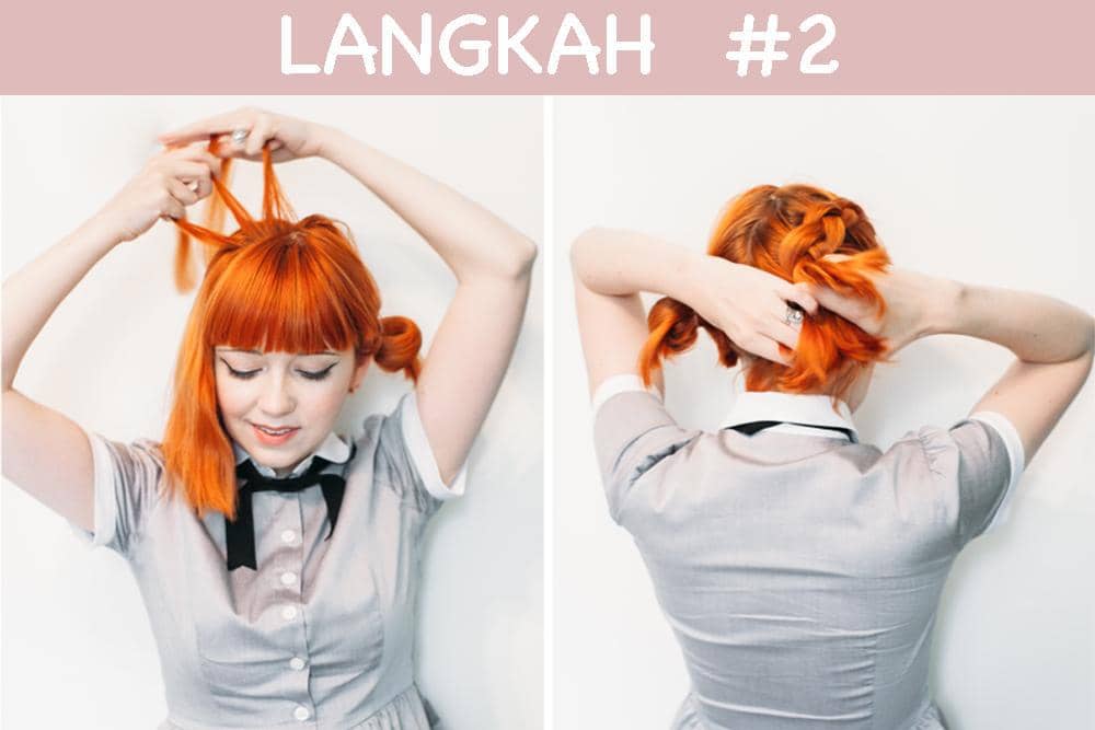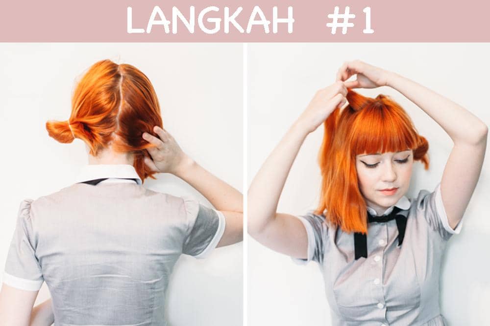 Langkah pertama, bagi rambut kamu menjadi 2 bagian, dan ikat salah satunya membentuk bun atau dicepol, kata lebih tidak asing di telingamu kan.