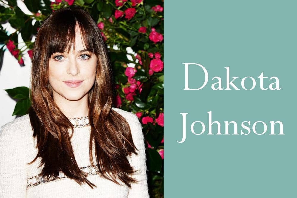 Pemeran wanita di dalam film 50 shades of grey dengan model potongan rambut shaggy panjang, dipermanis dengan bangs. Model rambut seperti ini cocok untuk wajah bentuk segitiga karena bisa mempertegas bentuk dagu yang lebar.