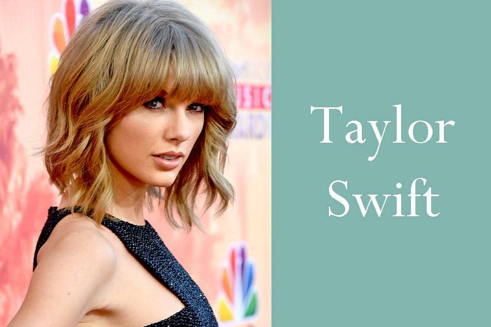 Pelantun lagu “blank space” dengan gaya rambut bob shaggy dan sedikit curly pada bagian wajah, cocok untuk wajah lonjong atau oval.