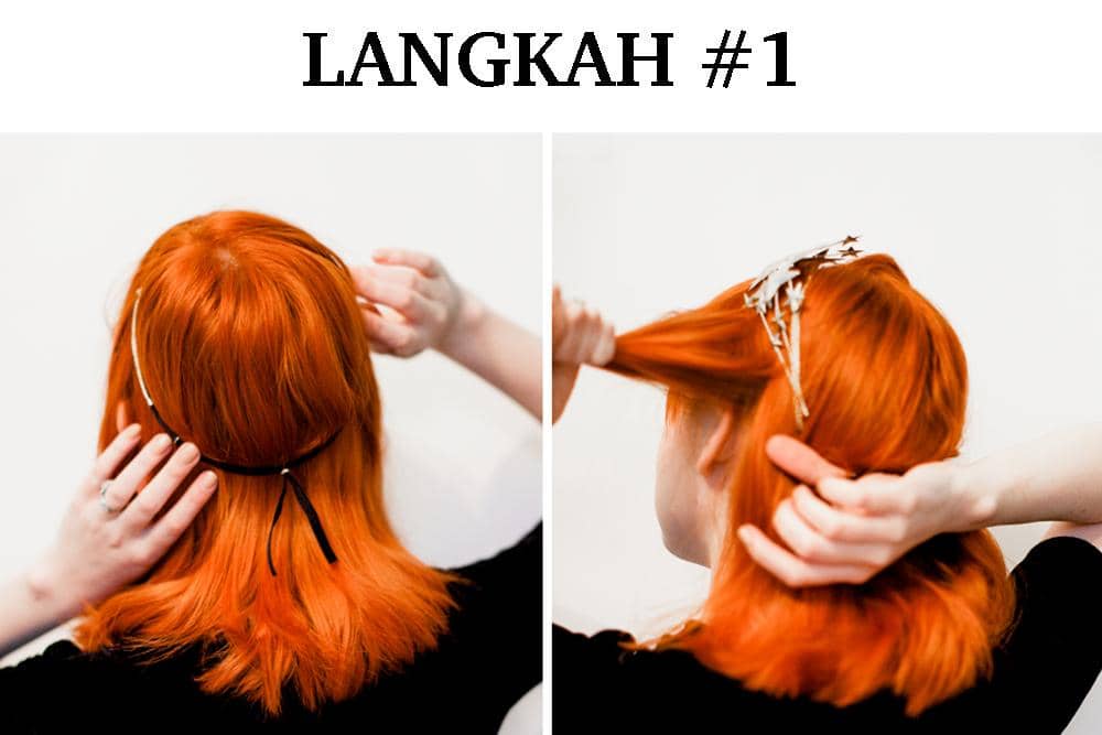 1. Letakkan headband di kepala, kemudian ambil sebagian dari rambutmu dan gulung ke dalam headband kamu.