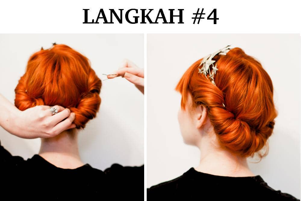 2. Kamu bisa kencangkan dengan bobby pin, kemudian gulung kembali rambutmu ke dalam headband