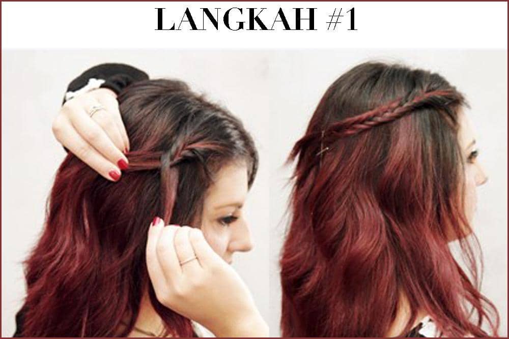1. Sisir rambut kamu agar lebih rapih, kemudian mulai ambil sedikit rambut bagian atas. Lalu kepang seluruh rmabutmu yang tadi hingga ujung.