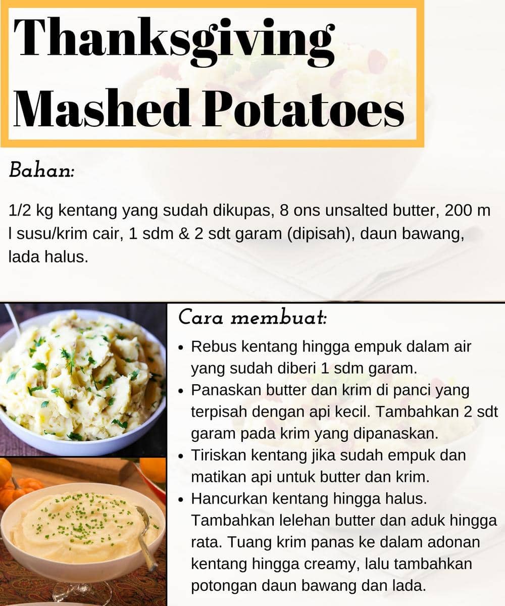 Salah satu momen yang paling ditunggu-tunggu saat berkumpul dengan keluarga adalah makan bersama. Kalau di negara Barat, menyajikan kalkun dan kue pai saat Thanksgiving Day sudah menjadi tradisi. Indonesia memang nggak merayakan Thanksgiving, tapi nggak ada salahnya untuk membawa suasana Thanksgiving ke rumah kamu dengan menu-menu khasnya saat arisan keluarga atau acara ulang tahun. Simak 3 menu andalan Popbela.com berikut ini.