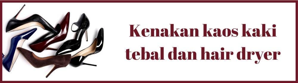 Kenakan kaos kaki tebal, pasangkan sepatumu, lalu arahkan hair dryer pada bagian yang terasa ketat. Panas dari hair dryer akan membuatmu lebih longgar. Cobalah gunakan untuk berjalan dan gunakan lagi hair dryer-nya sampai kamu merasa nyaman. Namun trik ini hanya berlaku untuk sepatu berbahan kulit ya.