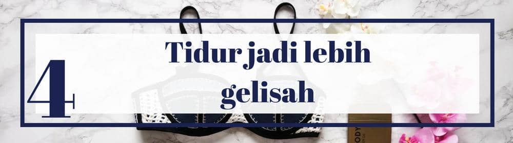 Jika kamu mengenakan bra saat tidur, jangan heran jika selalu merasa gelisah. Hal ini disebabkan karena bra mengganjal, pernafasan jadi kurang lancar dan menekan payudara. Tidurmu pun jadi kurang berkualitas dan membuatmu rentan terkena insomnia.