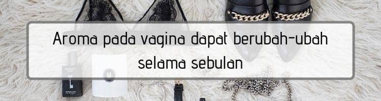 Ini cenderung bersifat asam sebelum menstruasi dan menyengat sesudahnya. Aroma vagina akan lebih tercium setelah selesai olahraga karena kelenjar keringat, dan selama aktivitas seks akibat pelumas alami yang dihasilkan tubuh. Para ahli mengatakan kalau kondisi vagina dengan sedikit aroma ini normal. Namun ketika baunya tercium lebih kuat, kurang sedap, serta diiringi dengan keputihan nggak wajar, segera konsultasikan ke dokter.
