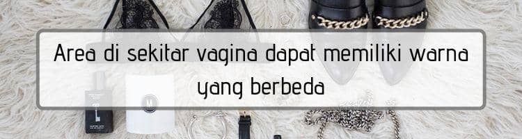 Warna pada bagian sekitar vagina nggak selalu sama dengan warna bagian tubuh lainnya. Perempuan dengan kulit yang lebih cerah memiliki labia berwarna kecoklatan atau keunguan. Sedangkan perempuan dengan warna kulit yang lebih gelap memiliki vulva dengan rona yang lebih cerah. Masing-masing area vagina pun dapat memiliki warna yang berbeda-beda, misalnya bagian labia terlihat lebih gelap dan perineum nampak berwarna merah muda yang pucat.