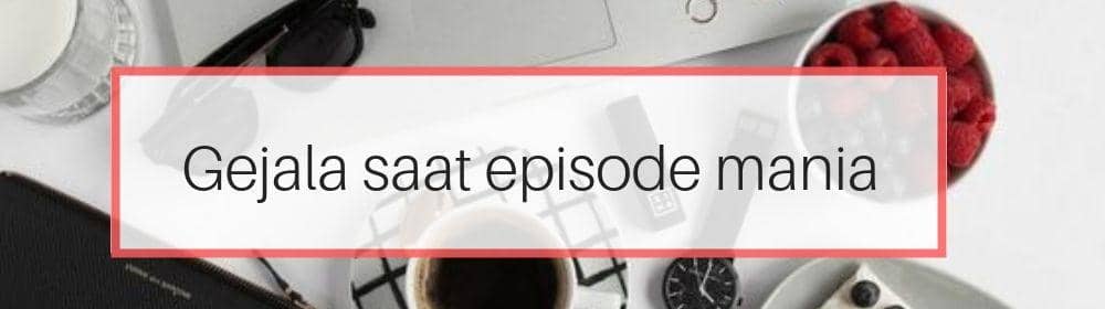 Merasa lebih ceria, lebih bersemangat, gembira berlebihan, meningkatnya energi atau tingkat aktivitas, meningkatnya self-esteem, berpikir tiada henti, lebih banyak bicara, mudah merasa terganggu, nggak butuh banyak tidur, dan mengambil risiko lebih sering dari biasanya, adalah gejala-gejala yang muncul saat seseorang penderita bipolar mengalam episode mania.