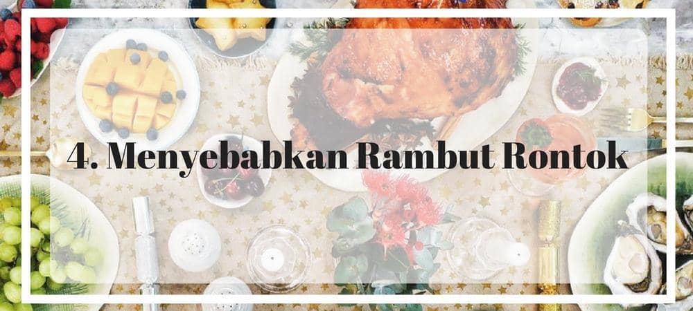 Tubuh yang kekurangan zat besi bisa menyebabkan rambut rontok, cara mudah mengatasinya adalah mengonsumsi cukup zat besi di dalam asupan makan kamu sehari-hari nih. Perbanyak konsumsi tiram, kerang, bayam.