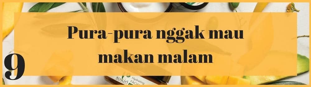 Ini nih, kesalahan paling besar. Karena merasa nggak mau makan malam akan berakhir dengan rasa kelaparan di tengah malam. Dengan begini akhirnya kamu pun jadi nggak bisa tidur nyenyak atau diam-diam menyantap makanan sebelum tidur. Tetaplah makan malam, walaupun hanya beberapa potong buah.