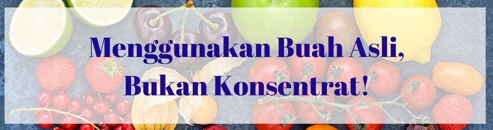Kamu tahu kan kalau konsentrat itu adalah sari buah? Jadi, sebetulnya, banyak juga minuman yang dijual di pasaran itu lebih banyak kandungan air dibanding buah aslinya, Bela. Penjelasan mudahnya sih, jus yang banyak kita lihat itu cara pembuatannya seperti sirup. Beda jauh kan dengan proses pembuatan cold-pressed juice dari Re.Juve yang bisa menghabiskan 1 kg sayur dan buah hanya untuk satu botol setiap harinya!