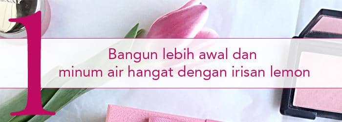 “Jika aku bekerja, aku bangun pada pukul 4:30 atau 5 pagi. Jika tidak, sekitar pukul 8 dan 9 pagi, karena aku tipe orang yang tidur larut malam. Tapi biasanya ketika aku bangun, aku akan membuat segelas air hangat dengan irisan lemon.”