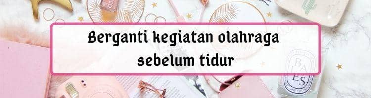 Para ahli menyarankan untuk berolahraga 3 jam sebelum waktu tidur. Dengan begitu, tubuh memiliki waktu yang cukup untuk menurunkan hormon-hormon ke level normal. Selain itu, kamu dapat mengganti jenis aktivitas yang dilakukan. Misalnya lari membuatmu menjadi lebih terjaga dan sulit tidur, coba beralih ke jenis olahraga lain yang dapat membuat tubuh jadi lebih rileks seperti yoga.