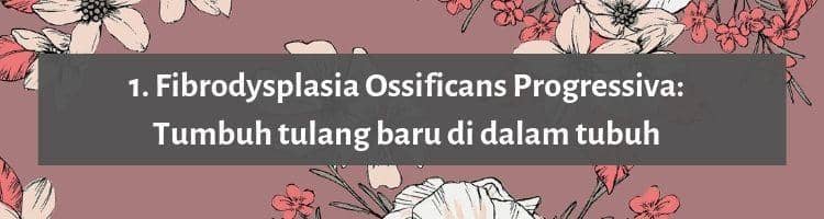 Fibrodysplasia Ossificans Progressiva (FOP) merupakan kondisi genetik yang paling aneh, langka dan menyakitkan karena menyebabkan tulang tumbuh di tempat yang tidak seharusnya. Penyakit aneh ini disebabkan oleh mutasi genetik pada sistem imun tubuh yang berfungsi untuk memperbaiki cedera.