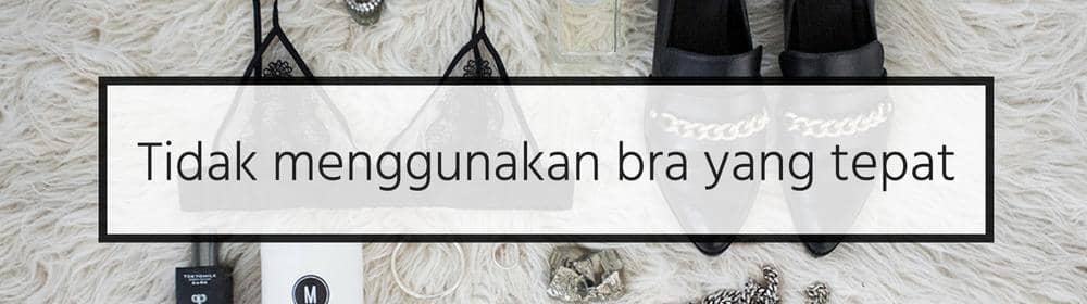 Ini merupakan hal yang masih sering dilakukan oleh banyak perempuan. Bra yang tepat akan mampu menopang payudara dengan sempurna. Pastikan kamu memilih ukuran yang sesuai. Konsultasikan dengan penjaga toko yang akan membantumu menemukan ukuran yang pas. Kamu juga bisa menggunakan push up bra yang akan membantu menopang dan membentuk payudara dengan baik.