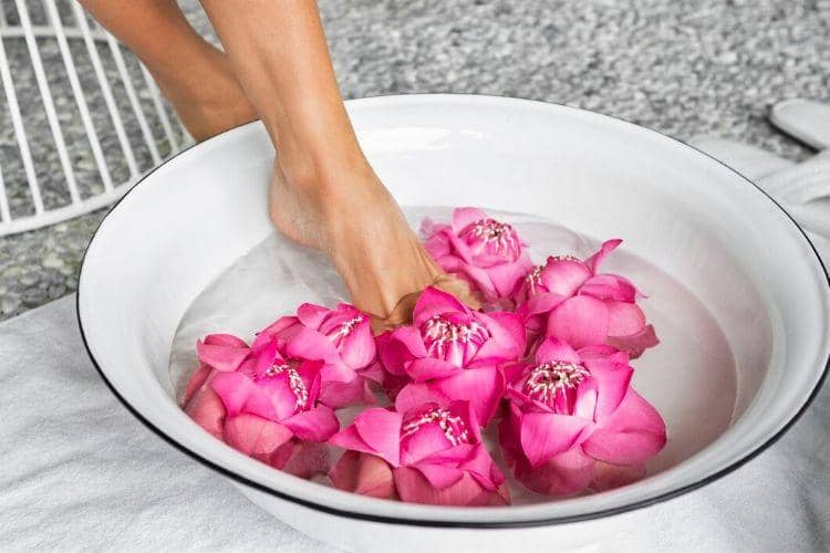 Ingin menghilangkan rasa pegal sekaligus kulit kusam pada kaki? kamu bisa mencoba perawatan kaki di rumahmu. Caranya dimulai dari menggunting dan membersikah kuku kaki. Kemudian rendam kaki di dalam air hangat yang sudah dicampur dengan garam selama 10 menit. Lanjutkan dengan menggunakan sikat kaki yang bisa mengeksfoliasi sel-sel kulit mati. Setelah selesai cucilah kaki dan gunakan body lotion untuk mengembalikan kelembapan kulit.