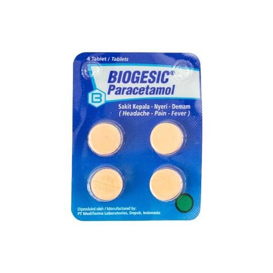Obat ini bisa dikonsumsi kapanpun tanpa kafein yang mampu meredakan berbagai macam nyeri. Kandungan di dalamnya yaitu antipiretik dan analgesic, obat ini juga tidak mengandung kafein sehingga aman bagi kamu yang memiliki gangguan lambung. Obat Biogesic aman digunakan wanita hamil dan anak-anak.