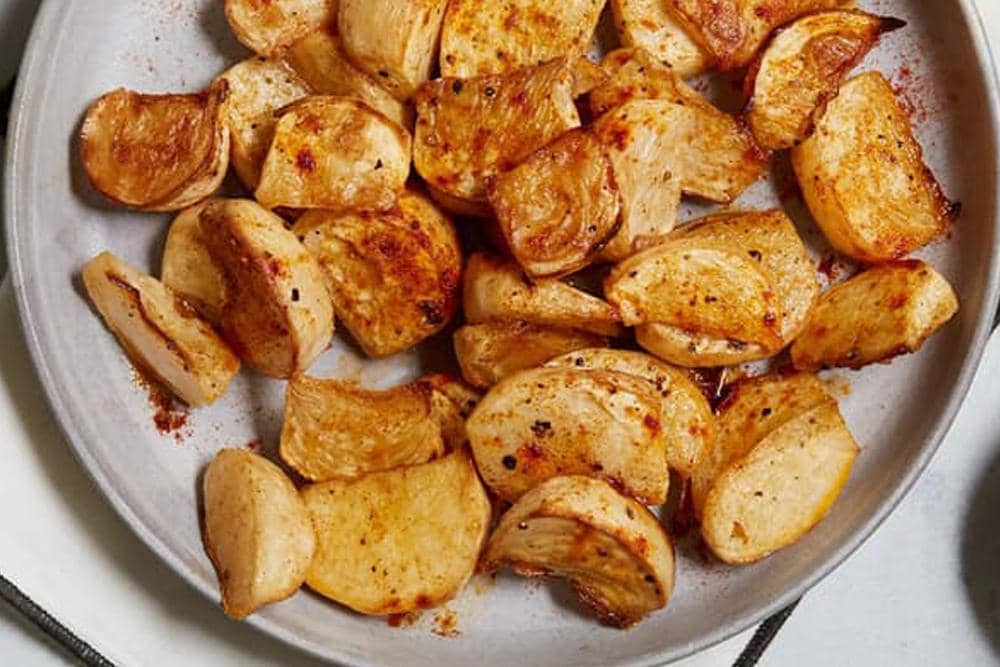 4. Letakkan lobak yang sudah diberikan bumbu ke baking sheet kamu, lalu masukkan ke dalam oven, dan panggang kurang lebih selama 15-17 menit.
