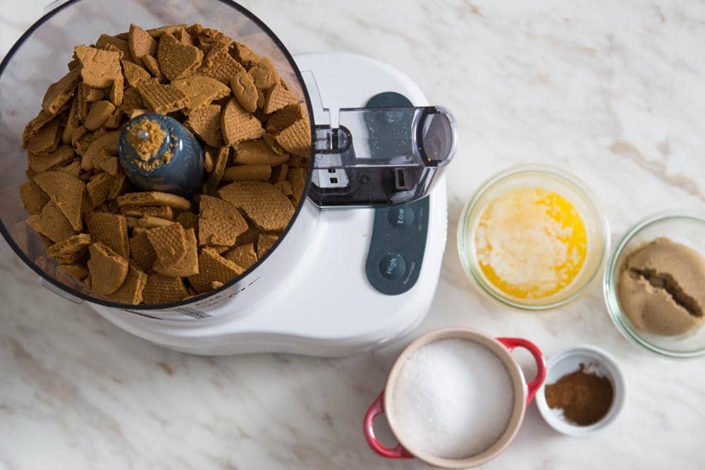 1. Langkah pertama, letakkan biskuit ke dalam food processor atau kamu bisa menghancurkannya dengan tangan, tambahkan mentega cair, gula, brown sugar, aduk semua bahan tersebut hingga merata. Setelah itu pisahkan crumble ke dalam 8 gelas dan sisihkan.