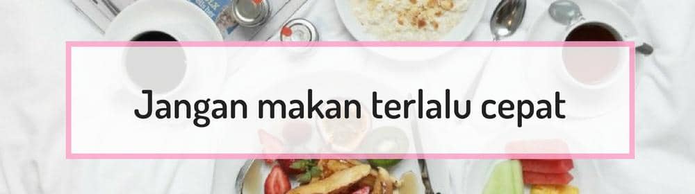 Sering makan terburu-buru? Sebaiknya segera hentikan kebiasaan ini ya. Makan terlalu cepat tidak hanya berbahaya bagi sistem pernapasn dan pencernaan, tapi juga akan membuat kamu makan dalam jumlah yang berlebihan. Cobalah nikmati makananmu secara perlahan. Selain dapat membuat makanan terasa lebih enak, makan perlahan juga akan membuat kamu merasa kenyang lebih cepat, sehingga asupan makanan yang masuk tidak terlalu banyak.