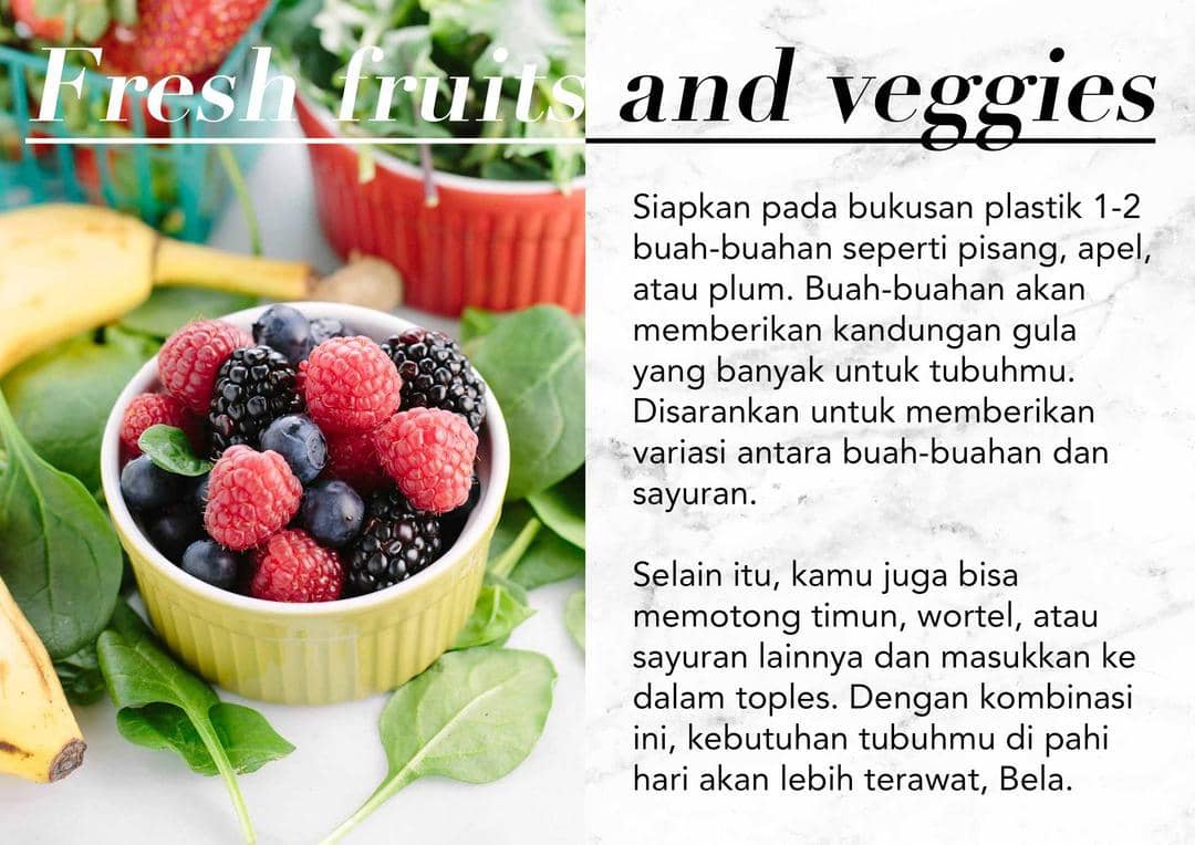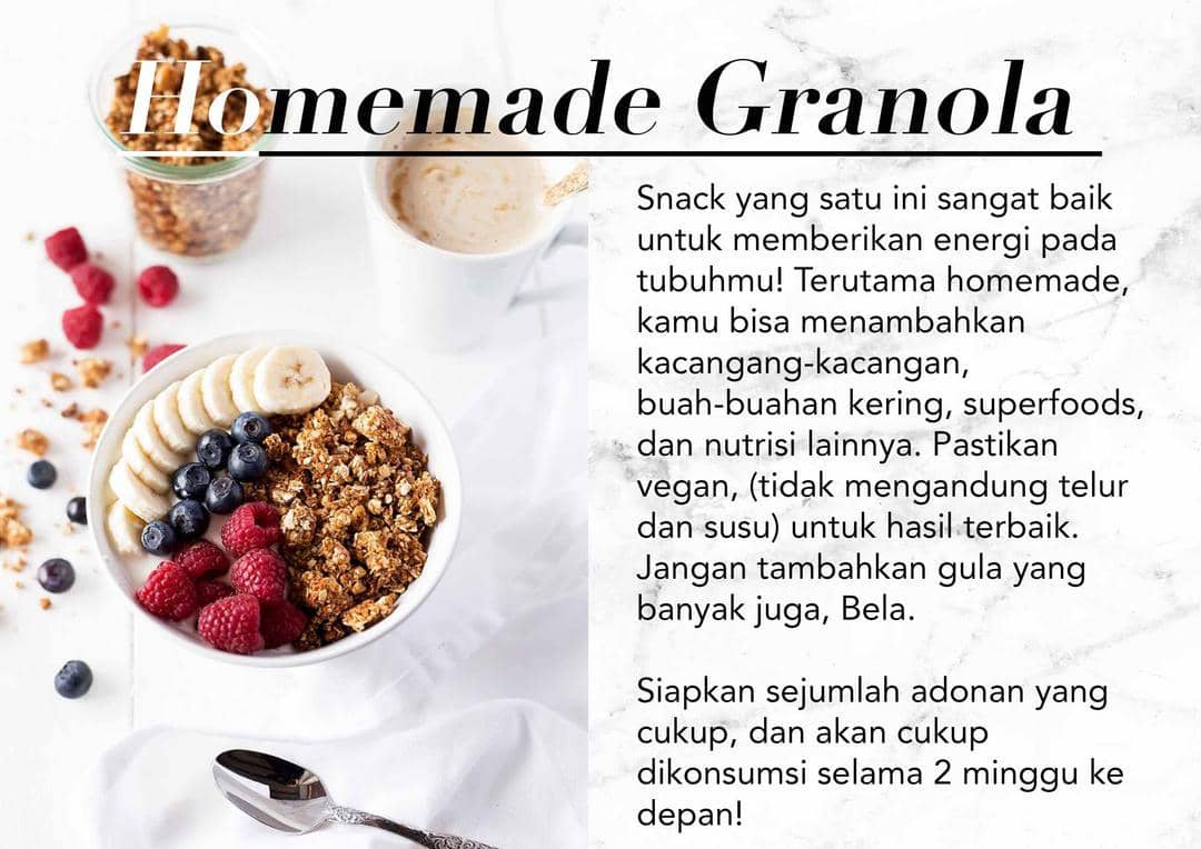 Sarapan adalah menu terpenting dalam keseharian kamu, Bela. Sudahkah kamu mencoba membuat green smoothie atau breakfast porridge? Bila kamu termasuk salah satu wanita sibuk yang mungkin nggak memberikan waktu yang cukup untuk sarapan, bila kamu memiliki jadwal yang penuh dan sibuk, pastikan setidaknya kamu sarapan, Bela.