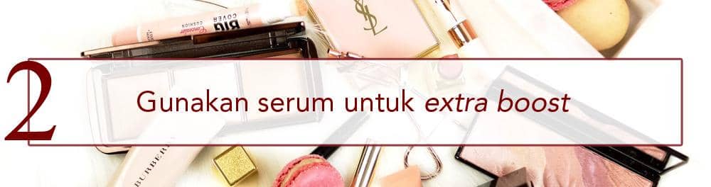 Serum mengandung bahan-bahan yang tidak dimiliki oleh pelembap, tetapi produk ini juga tidak memiliki kandungan SPF seperti pelembap. Artinya, kamu bisa melapisinya jika kulit kusammu membutuhkan asupan ekstra agar terhindar dari polusi. Menggunakan serum sebelum riasan juga dapat menonjolkan warna kulit naturalmu dan menyingkirkan bintik gelap pada wajah.