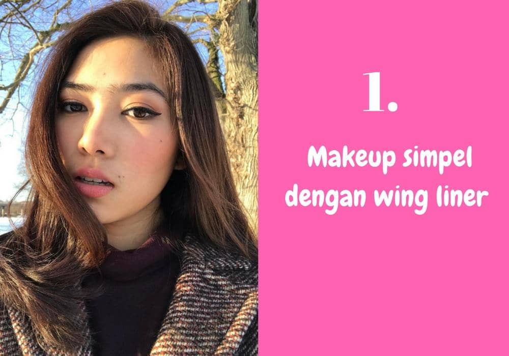 Nggak ribet, Isyana cukup memulaskan satu warna eyeshadow coklat dan pulasan wing liner untuk tampil cantik natural.