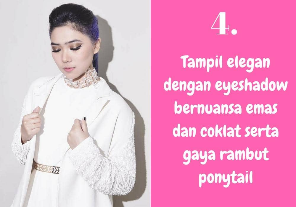 Untuk tampilan yang lebih formal, coba gaya rambut ponytail serta soft smokey eyes dengan pulasan eyeshadow coklat dan emas. You're good to go!