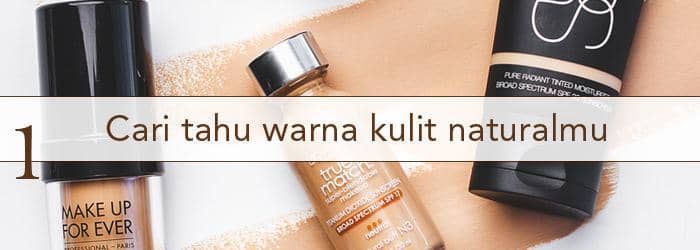Ini tahap pertama untuk memaksimalkan tampilan foundation. Cobalah untuk mencari tahu dengan melihat warna urat nadi di pergelangan tangan. Jika warnanya terlihat kebiruan, maka gunakan alas bedak berwarna kekuningan. Lalu bila uratmu terlihat kehijauan, pilih produk yang berwarna dasar pink. Kamu juga bisa mencari produk dengan cara menyesuaikan warnanya di bagian leher.