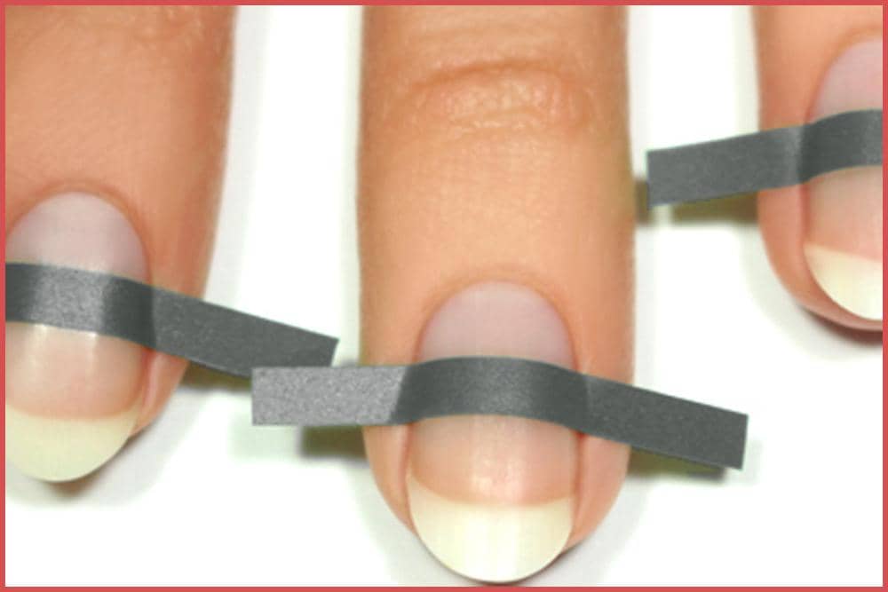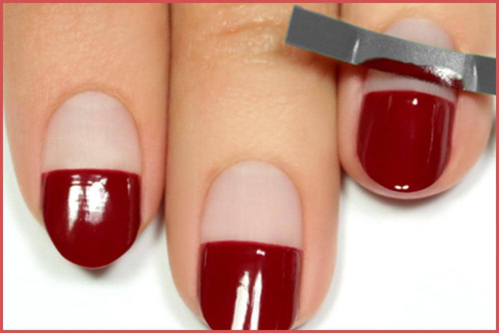 Langkah pertama, yang harus kamu lakukan adalah pastikan kuku kamu bersih, kemudian berikan base coat pada kuku kamu, tunggu sampai kering dan aplikasikan selotip tepat di tengah.