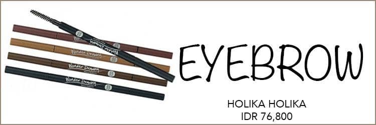 Untuk sehari-hari, kamu bisa merias alismu dengan eyebrow pencil dari Holika Holika yang dilengkapi dengan brush agar tampak lebih rapi namun tetap terlihat natural.