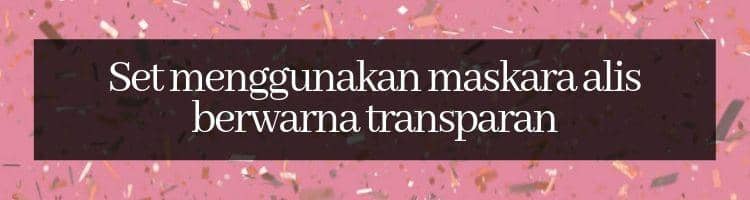 Salah satu cara membuat alis natural adalah menggunakan maskara alis berwarna transparan. Warna transparan dapat membentuk bentuk alismu dengan sempurna tanpa kesan yang berlebihan. Kalau kamu melangkahi step menggambar alis menggunakan pensil, kamu bisa langsung menggunakan maskara alis berwarna cokelat.