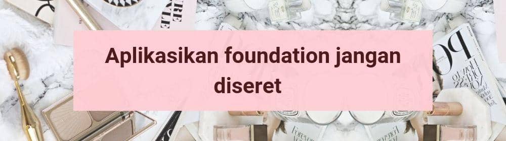 Untuk mengaplikasikan foundation, beauty blender memang mempermudah penggunaannya. Gunakan beauty blender dengan teknik dab ke seluruh wajah dan jangan diseret. Begitupula jika kamu menggunakan foundation brush, gunakan teknik buffing agar tidak menimbulkan bercak atau garis-garis. Hasilnya jadi lebih flawless deh! Yang terpenting jangan menggunakan foundation terlalu banyak ya.