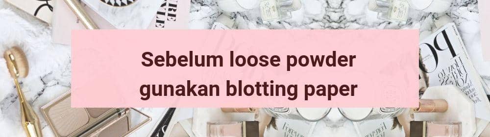 Blotting paper berfungsi untuk mengurangi kemilau di wajah yang berlebihan. Setelah itu, aplikasikan loose powder yang ringan dengan menggunakan brush. Aplikasikan di area yang biasanya memproduksi minyak berlebih seperti t-zone. Dengan sedikit kilauan pada wajah maka akan terbentuk manipulasi kulit kedua yang terlihat flawless.