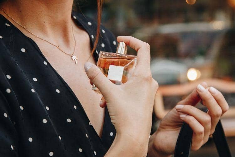 Kamu mungkin sudah tau kalau menyemprotkan parfum di titik denyut nadi bisa membuat wangi parfum lebih semerbak. Ini karena sepanjang hari kerja denyut nadi kamu yang aktif menghasilkan panas. Suhu panas ini akan membantu menyebarkan aroma parfum.
