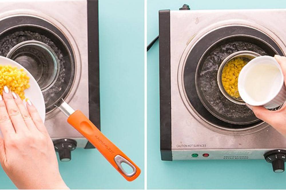 2. Kemudian, masukan beeswax ke dalam toples tadi.